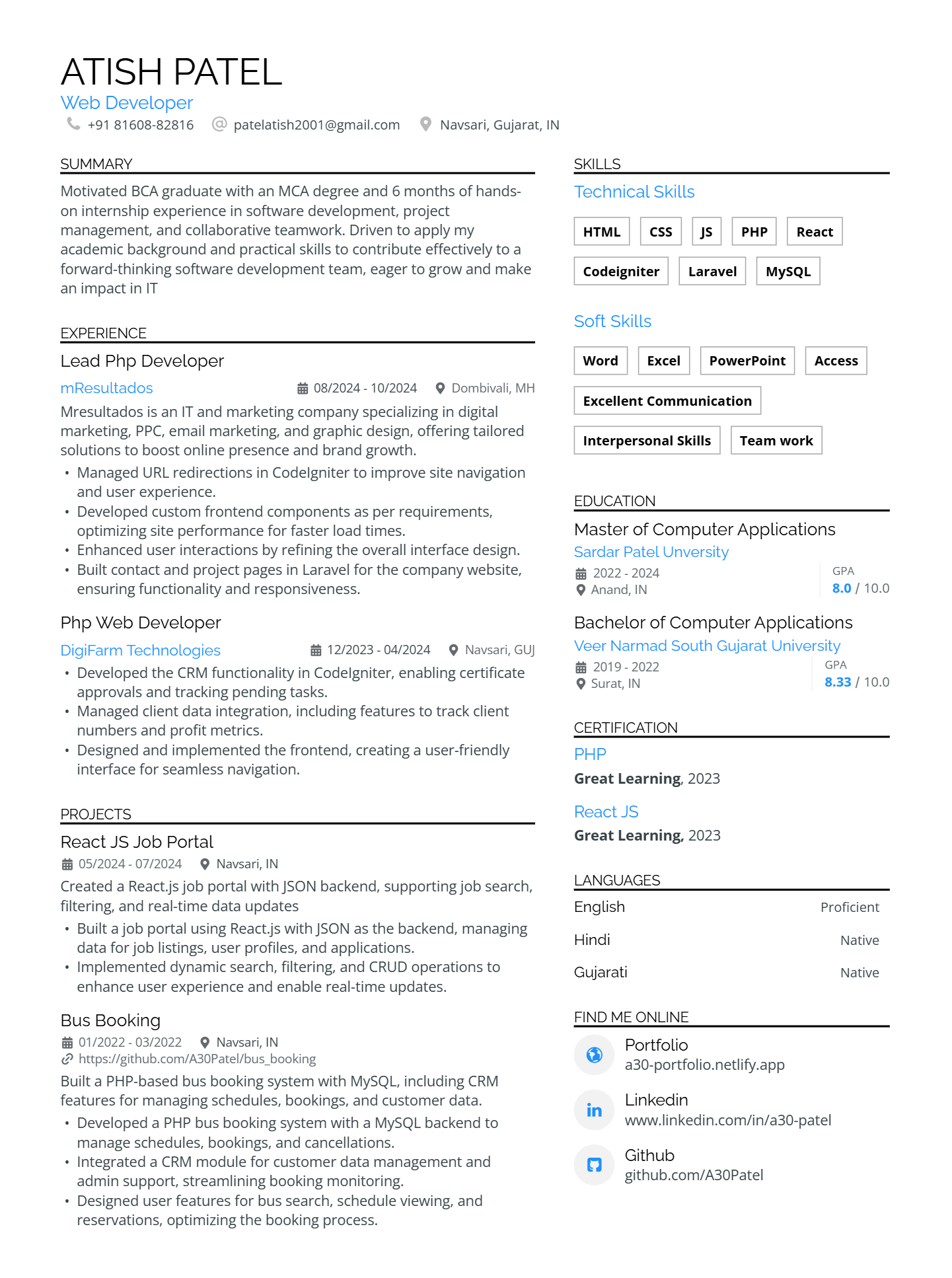 I'm a proficient web developer specializing in Laravel, React.js and CodeIgniter, with expertise in both frontend and backend development. I also have hands-on experience with WordPress for building scalable and dynamic websites.